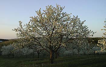 Article by Amy Payne (Capital News Service) in the Leelanau Enterprise February 16, 2006 Farmers, industry officials and local lawmakers are supporting a new bill that would make the cherry the offical state fruit of Michigan. Michigan House Representatives and Senators are sponsoring the bill. Michigan is one of the nation's largest producers of cherries, producing on average 206 millions pounds of tart cherries a year. Read Cherry could blossom as official state fruit. Marketing Grant for Northern Michigan Cherry Farmers Article by Bill O'Brien from the Record Eagle January 29, 2006 The Traverse City Record-Eagle reports that the US government will invest $100,000 with a group of local growers to expand the use of the Balaton cherry, native to Hungary. Shoreline Fruit Inc., a group of area cherry growers, received a grant from the U.S. Department of Agriculture's value-added producer program that helps farmers and growers bring products directly to consumers to encourage the sale of northwest Michigan-grown Balaton cherries. Balaton cherries are already popular with area vintners for making cherry wine, and growers said they want to expand to other areas, including dried cherry products and in cherry-based cheeses. Read There's a new cherry in town: Federal grant will be used to push Balaton. Warm spring makes life like a bowl of cherries for farmers Article by Lindsay Vanhulle from the Record Eagle June 29, 2005 Local sweet cherries should be ready for eating, tasting and pit-spitting contests when the National Cherry Festival starts Saturday. Area farmers said their crop is slightly ahead of schedule due to warm spring weather. "The festival is starting early this year, but the early varieties should be ready," said Dennis Hoxsie, owner of Hoxsie's Farm Market in Acme. "I was just out in the orchard and ate a few, and you could do that right now." Read the complete article. Hard frost causes some damage to cherry trees Article by Alan Campbell from The Leelanau Enterprise May 5, 2005 Cherry farmers had a restless sleep Wednesday night when a strong frost carpeted Leelanau’s low areas with an unwanted white covering. And some didn’t sleep at all. Greg Williams, who tends to 175 acres of tart and sweet cherry, apple, apricot and peach trees, was busy hauling a “frost dragon” through low areas in his orchards. "He's been up all night running the frost dragon machine,” reported a concerned Antoinette Williams, his wife, from the couple’s home on East Sullivan Road. Read the complete article. National Cherry Festival Entertainment Announced April 20, 2005 The TC Record-Eagle reports that the National Cherry Festival has announced its lineup for the 79th summer event, which runs July 2-9, 2005. While the Blue Angels will not appear, there will be an air show. Entertainment includes Little Feat, Three Men and a Tenor, Traverse City's Encore Society, Dierks Bentley, 1964 The Tribute, Eddie Money, John Waite and Gregg Rolie. Read Organizers promise fabulous Cherry Festival, great entertainment in the Traverse City Record-Eagle Cherry Festival Commemorative Print Selected April 20, 2005 The Record-Eagle also reports that Cedar artist D. B. Henkel's cherry-themed watercolor "Still Life with Cherries" was selected as the 2005 National Cherry Festival's commemorative print. Those who wish to enter next year's contest must submit the art work by mid-June to the festival office at 109 Sixth St. in Traverse City. Read Still Life with cherries is commemorative pick in the Traverse City Record-Eagle New Cherry Science April 1, 2005 Scientists from Lansing to London are abuzz at today's announcement regarding a new cherry finding by cherry researchers. Read Stunning Cherry Discovery from the Leelanau News. February is National Cherry Month! February 1, 2005 Michigan is the largest producer of Montmorency tart cherries, growing 70-75% of the crop and Leelanau leads the way. The Cherry Marketing Institute has a lot of information available for educators and other folks regarding the history and present state of the cherry industry including growing research showing that antioxidants in tart cherries may relieve the pain of arthritis and gout and help fight cancer and heart disease. View cherry backgrounds, Leelanau cherry information and cherry links from Absolute Michigan. Are cherries the new wonder fruit? Science suggests they're good for more than just pies MSNBC Article by Bob Trott October 27th, 2004 For decades, cherries slid by on reputation only. The tangy little orbs of deliciousness have been credited with an array of health advantages, from soothing gout and arthritis to helping with a good night's sleep. Without hard data, though, such claims were dismissed as proverbial old wives' tales. Well, sometimes old wives know what they’re talking about. "It was always anecdotal, but it’s been reported so frequently, by so many different people, that you have to think there may be something to it," says Dr. Russell J. Reiter, professor of neuroendocrinology at The University of Texas Health Science Center in San Antonio. Read the entire article. Tarts are down, but sweets double last year's cherry harvest Article from MLive July 24th, 2004 The state's tart cherry production is down 6 percent from 2003, but the sweet cherry crop is expected to double last year's harvest. This year, northern Michigan farms are expected to produce an estimated 85 million pounds of tart cherries, the kind used for pie filling. They are also expected to produce more than half the projected statewide yield of 145 million, and over a third of the estimated national yield of 215 million pounds, according to the U.S. Department of Agriculture. Read the complete article. Cherries may be picked by health conscious Article from The Flint Journal July 13th, 2004 A cocktail that is healthy and can block the morning-after effects of the booze? That is an implication that ex-Davison resident Lori Hall Steele leaves 