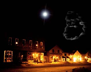 |  Christmas came, and so did Santa.  Despite the chaos of repair to our home it was a  good celebration.  Despite the lack of funds, the three children received what they asked for, much to their delight.  Some of this satisfaction is due to the fact they don't ask for much. No TV for eighteen months reduces the exposure to materialism that sucks away at the values of society and places the emphasis on what you have, versus what you do or who you are. There was a lot of conversation about Santa prior to Christmas. The three still wrote notes, to be picked up by St. Nicholas on his feast day, December 6th. He still came and got the notes. And left treats in their stockings in place of the notes. No coal, no sticks, just tangerines and sweets. These are good children. They are a tribute to their mother. The notes had a few gift requests, and they also had something else. These notes to Santa, St. Nicholas, had pictures of the note writers and little sentences that while short, and childlike, said more than this, or any book, could ever say. They said...."Santa, I still believe in you and I love you." The curiosity over Santa didn't let up. Several times I was asked if he was real. I replied with the truth. Yes, he is real. Prepared to define this, I was never asked. But they began to speculate, and the first understanding of the Spirit world, which I believe is the Real world, the never-ending one, came into the mind of these three. This world, the one that holds this page, and this print, and the things you see as you look up right now from this page, is only the shadow of reality, or as C.S. Lewis describes it--the Shadowlands. Sometime this year we will talk about the Spirit of Santa Claus and good St. Nick. I will teach them how Real they really are. After church services on Christmas Eve, we opened one present each, ate lots of good stuff: clams, shrimp, cookies. About ten in the evening the children and I decided to go for a Christmas Eve walk. Poking around for coats and gloves and hats, the temperature having dipped into the twenties, we talked about Christmas Eve, and Christmas, and the magic. You know, The Magic. "Christmas Eve is the most magical night of the year!" exclaimed Mara to her two brothers. Her smile, her tone, her glee said much more than the words. There was no argument from the other two. Just bursts of agreement. The excitement was contagious. I could feel it. Smell it. Almost become it. The excitement of a little child on Christmas Eve. Pure. We stepped outside. The heavens were filled with stars. Where we live there are few houses, none within immediate view of our home (home mind you, not house), and cars seldom pass. It was just us, the pines, the great now-bare oaks and maples, and the stars. We followed our normal walking path that takes us down to the sea. It was but a few minutes when things began to happen. Before I tell you what they were, I want to take you to the end of the walk. This is a writer's prerogative, to change the order of things. As we chugged down the lane that leads us back to our home, greatly excited now about what had just happened (Don't worry, you'll find out), there appeared in the eastern sky..... Something. To this day, we have never been able to confirm what it was. Let me try and describe it, my version, the kids' version, and Holly's version. Logan and Mara ran about two hundred yards to the house to get Mom and drag her out and up the hill to where we were. She was already in her pajamas, but I had to get "adult" confirmation. Hanging just above the trees, was a... Light? Star? Oscillation? Aberration? UFO? Like a bright spotlight, this thing hung, no, it hovered over the trees in the eastern horizon. I thought at first it might be Sirius, it being the brightest star in the heavens, playing tricks with our eyes. But no, wrong time of year, wrong place in the sky. It was a very bright star-like light that had an oscillating pulse to it, showing twinges of red and green. One of us thought it was a UFO, the twins were sure it had something to do with Santa, and I, I just wondered if it was the star, you know, The Star, The Christmas Star. For many moments we watched this great light in the heavens dance about over the tree tops. It never revealed to us what it really was. We've never seen it since that magical night. The best of all though, was earlier. Yes, back to the part of this letter where I took you to the end. I think Noah was the first to spot Him. Streaking across the Christmas Eve sky. Santa. So fast you could barely focus. It wasn't long before Mara and Logan saw Him, too. They shouted with glee and confirmation. "Nah! No way!" - I can hear you all saying this to yourselves right now. Doubts leaping at me across the currents of time and distance. Well, I'm telling you, cross my heart and hope to die and go ahead and stick a needle in my eye, they saw him! Yeah, really! Santa! In the sky! Ask any of my kids, they'll tell you. He was there. There are people that would have tried to convince these children that they were seeing "things", meteors, perhaps.